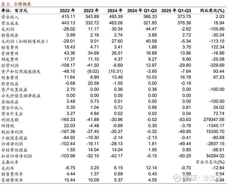 2025年Q1~Q3实现营收3.74亿元,同比增长2.03%;归母净利润-0.49亿元,同比下降2,837.15%,主要系原辅料价格上涨导致成本上升所致。