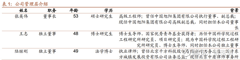 公司管理团队在化工及新能源材料领域拥有深厚的技术背景和丰富的行业经验。