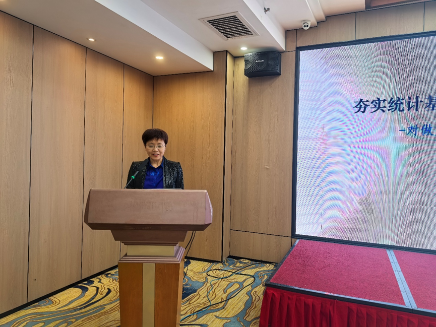 图为仲海洋作题为《夯实统计基础工作 提高统计数据质量》的报告