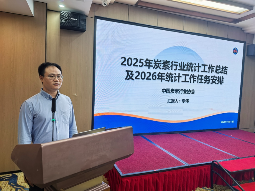 会议由炭素协会李伟从炭素行业统计工作的重要意义、统计入围会员企业情况、2024年年报和2025年定期报表完成情况、统计工作中存在的问题四个方面对2025年炭素行业统计工作进行了总结分析;并对2025年炭素行业统计年报和2026年统计工作任务进行了具体安排。
