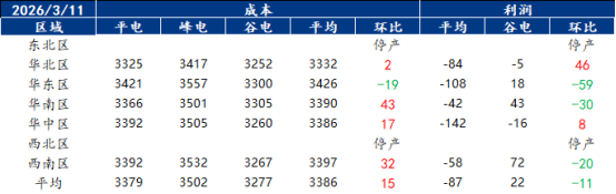 独立电弧炉建筑钢材钢厂成本调研(2026年3月12日)(单位:元/吨)